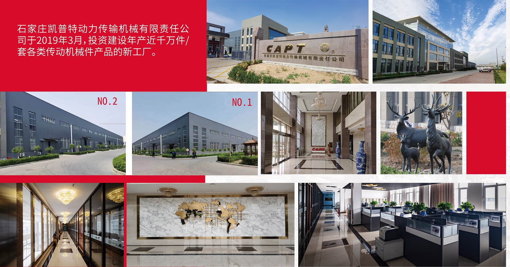 石家庄工厂 石家庄凯普特动力传输机械有限责任公司(简称石家庄CAPT)是集研发、生产及销售为一体的综合性传动产品的专业生产厂。2021年公司完成了新厂区搬迁,全面建成并加强的生产、研发体系,涵盖数控加工中心、信息化管理、热加工及环保治理等,可为客户持续提供快速、高质、高效的动力传动产品。